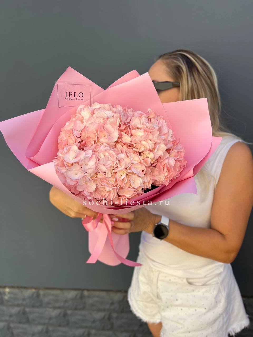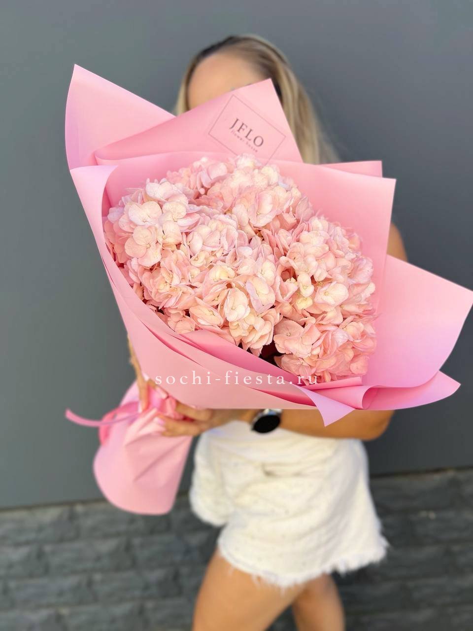 гортензия - 3 шт., лента, дизайнерская упаковка.