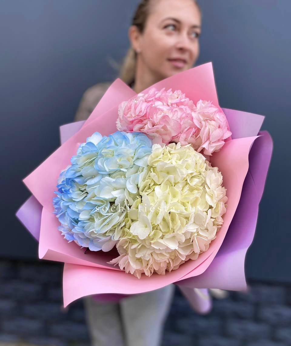 гортензия - 3 шт., лента, дизайнерская упаковка.