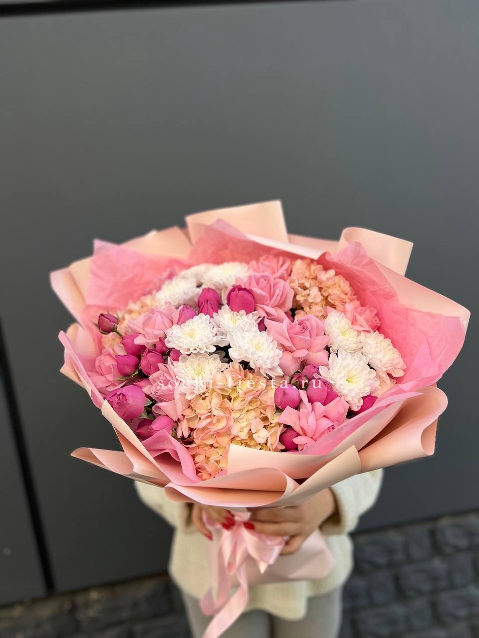Мы работаем только со свежими цветами — букеты радуют от 7 до 14 дней и дольше при правильном уходе.