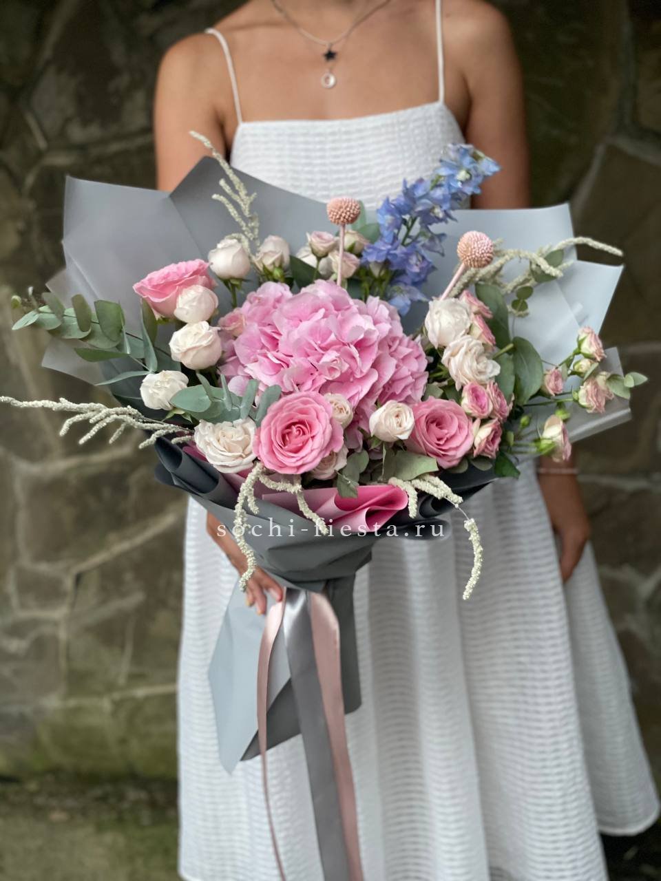 Этот букет — настоящий манифест женственности и ярких эмоций! Он выглядит очень эффектно за счет сочетания разных оттенков розового и игры фактур.