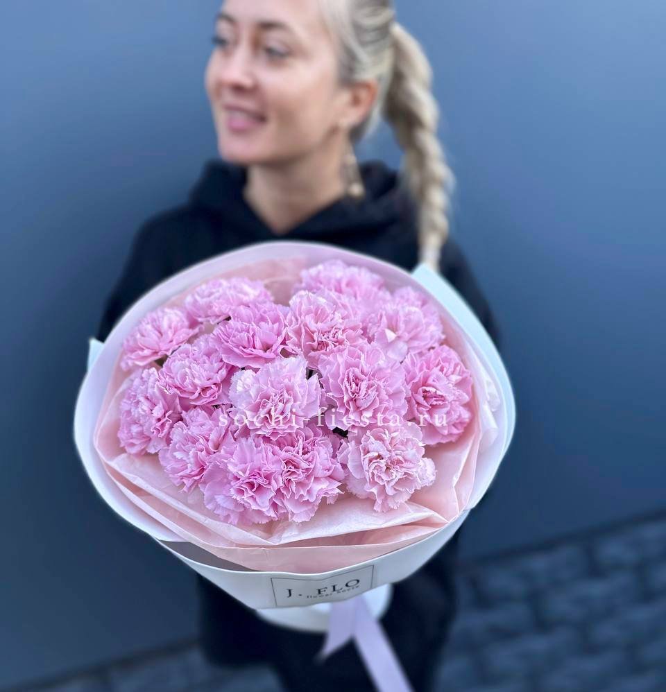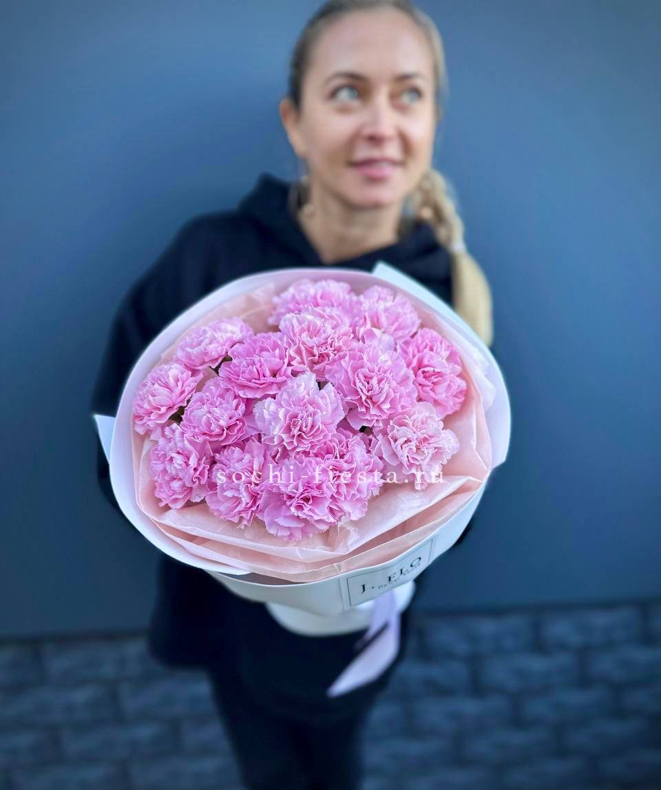 Пышные шапки диантусов выстраиваются в плотную охапку с выраженным объёмом. Множество мелких соцветий формирует воздушную текстуру и создаёт ощущение живого облака.