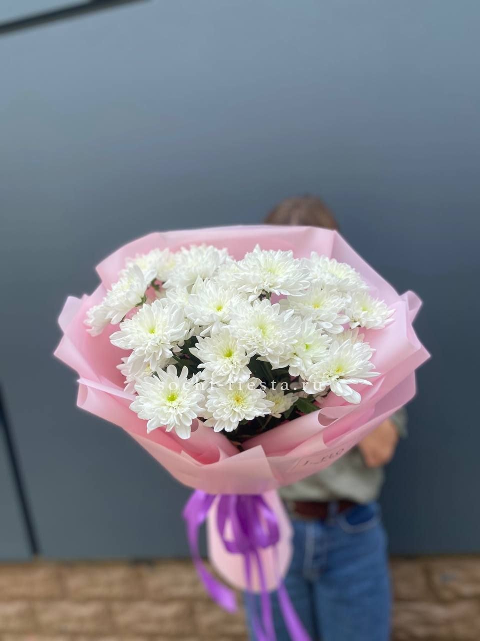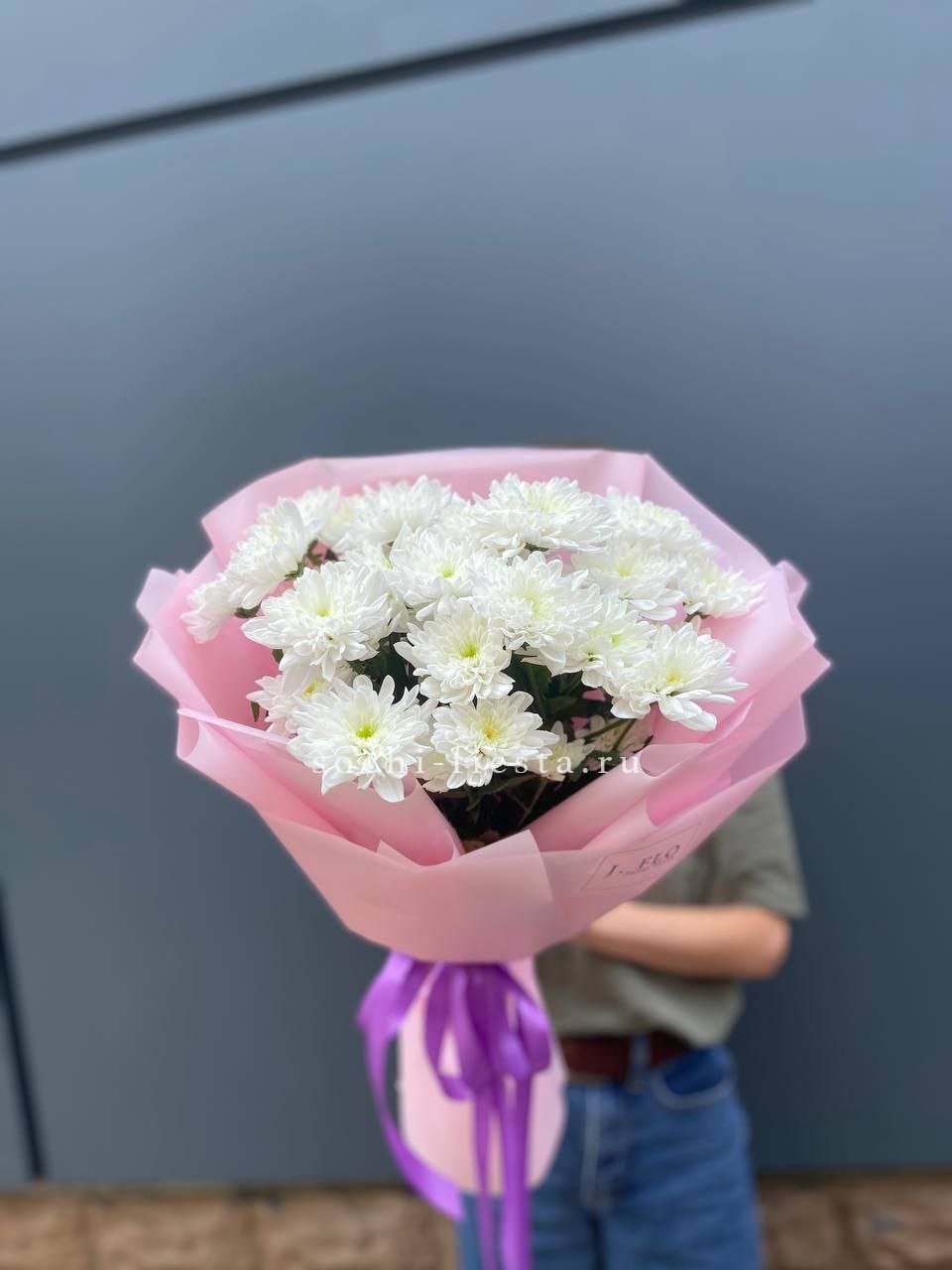 хризантема одноголовая 7 шт., лента, дизайнерская упаковка.