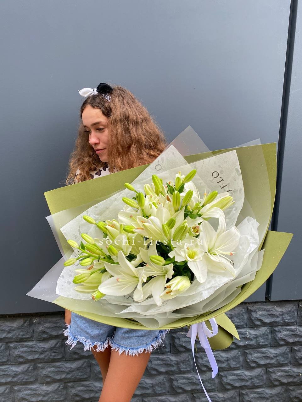Для заказа товара "Букет лилий "Изумруд"" с доставкой в Липецке нажмите в корзину