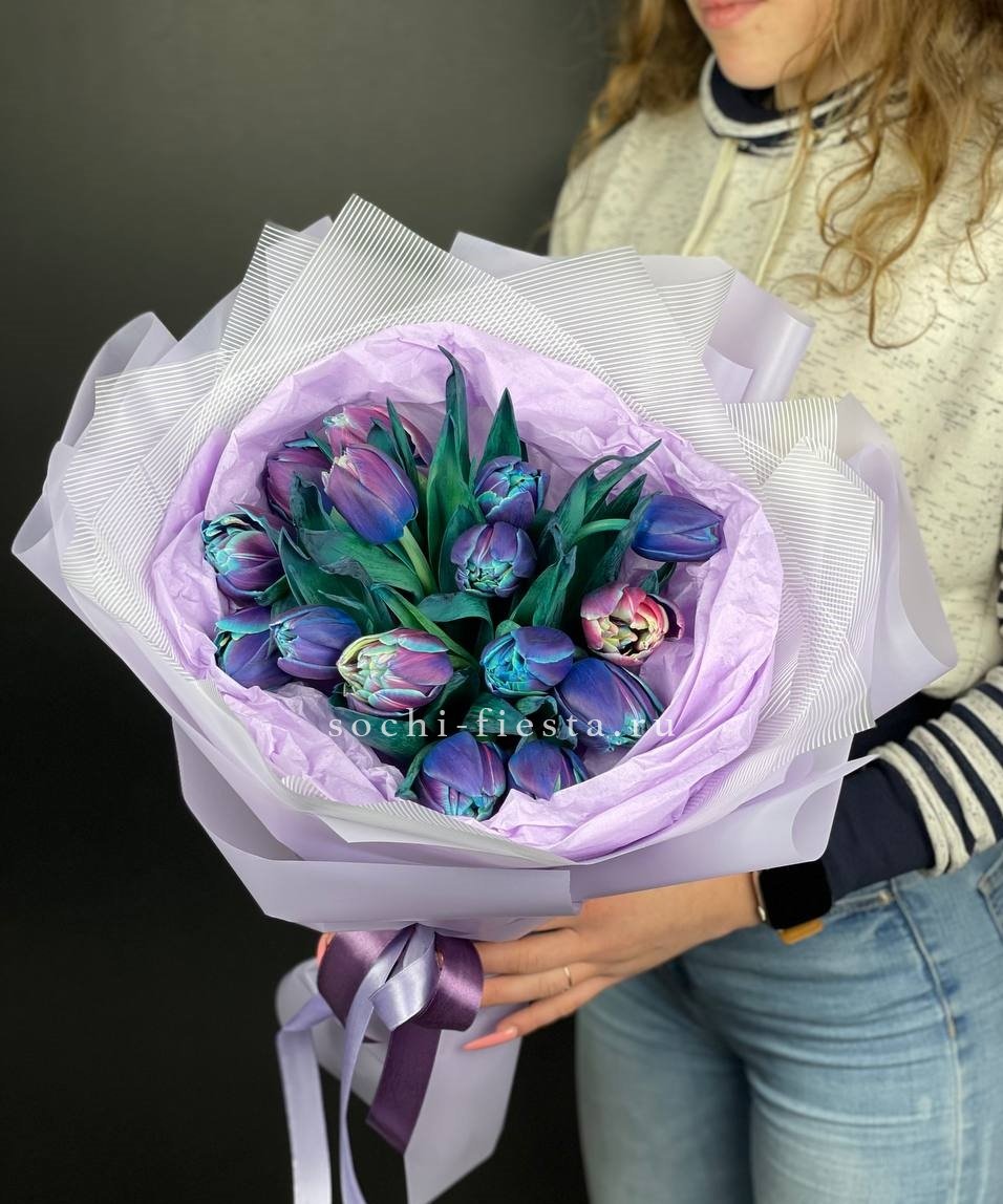 15 тюльпанов, лента, тишью, комбинированное оформление.