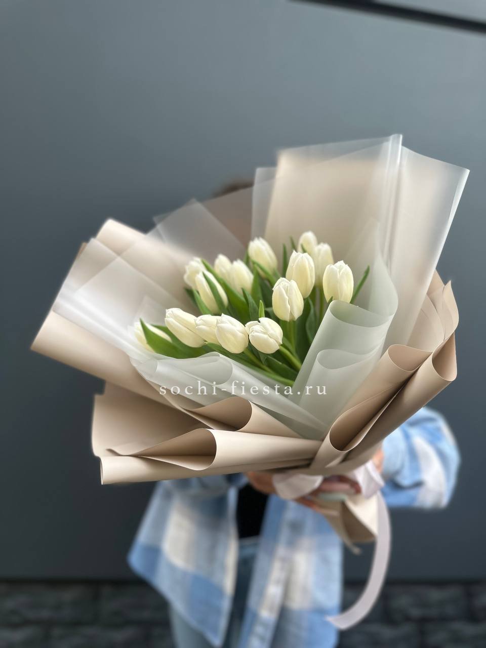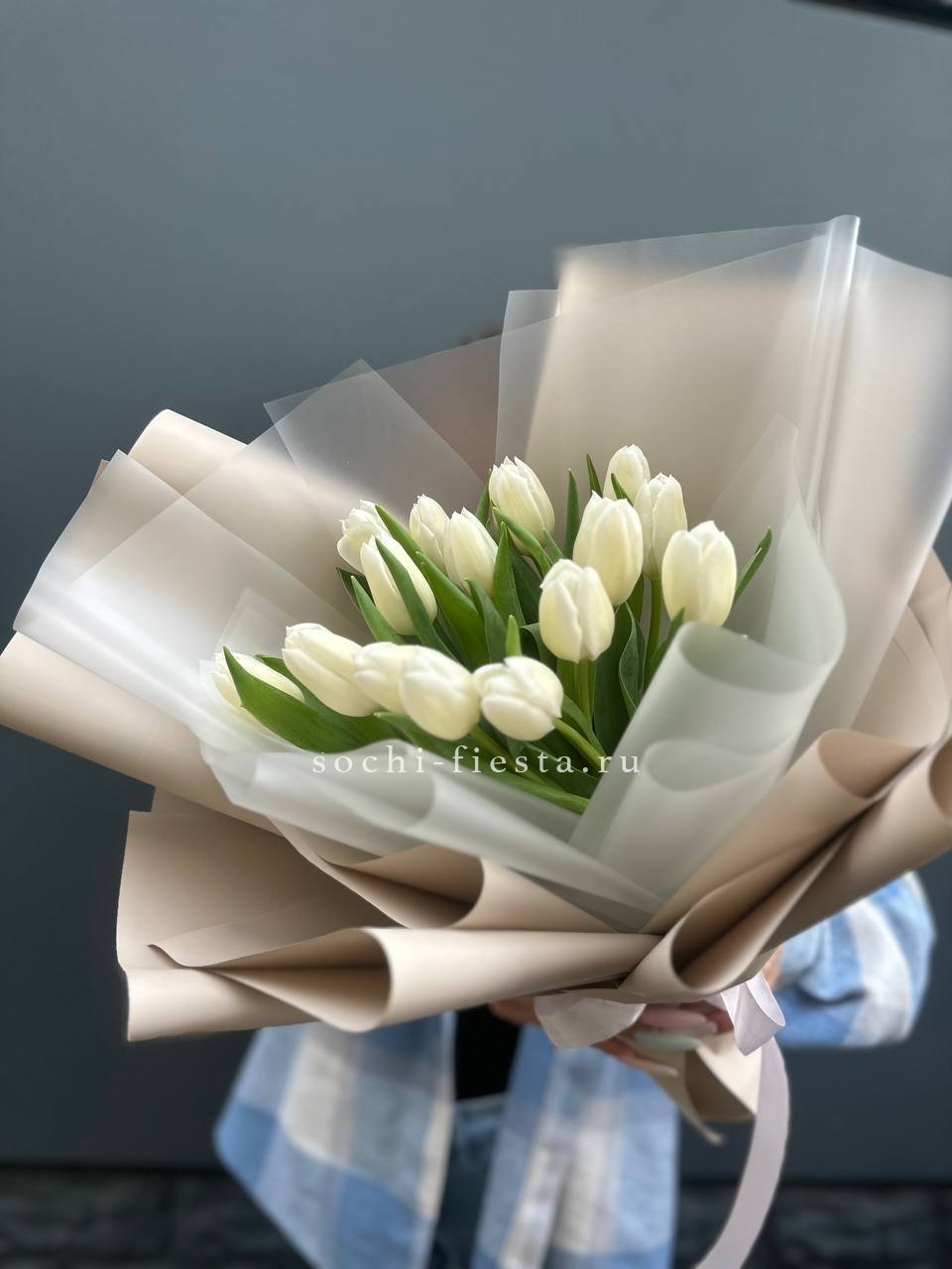 изначальная цена указана за букет из 15 тюльпанов Состав букета на фотографии: 25 тюльпанов, лента, упаковка.