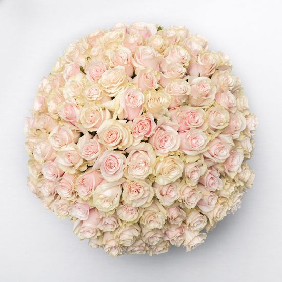 Пионовидные розы с плотными лепестками соседствуют с кустовыми формами и классическими бутонами. Розовые и белые оттенки перетекают друг в друга, создавая мягкую палитру с природной глубиной.