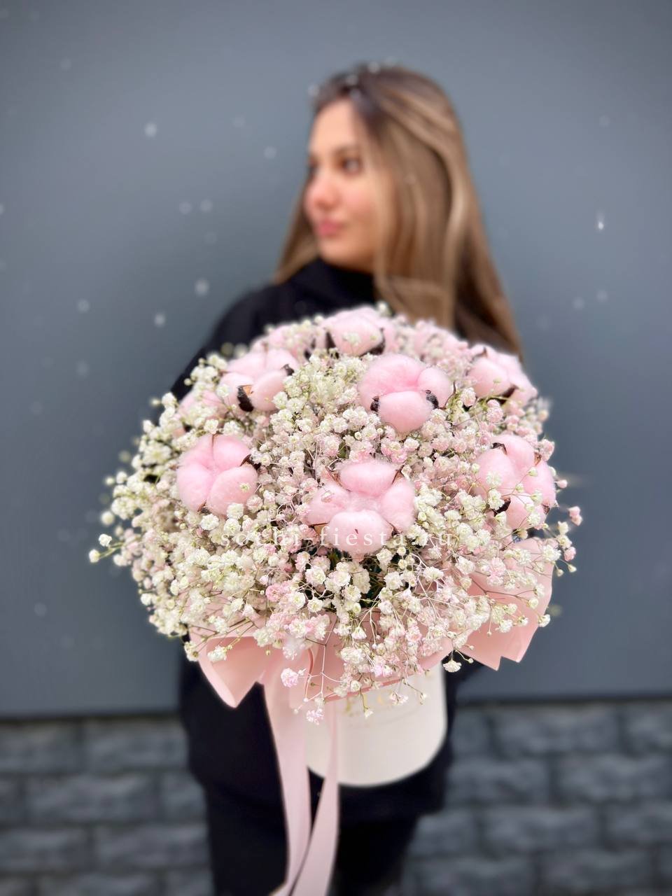 Гипсофилы с хлопком в шляпной коробке