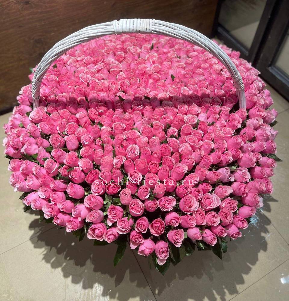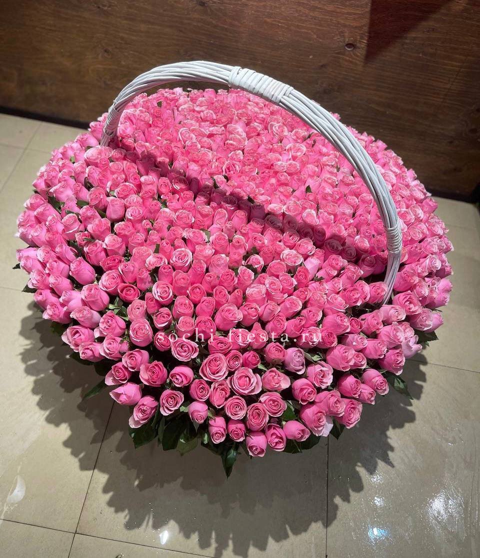 гортензии, розы одноголовые, диантусы, кустоые розы, альстромерии, эвкалипт, корзина.