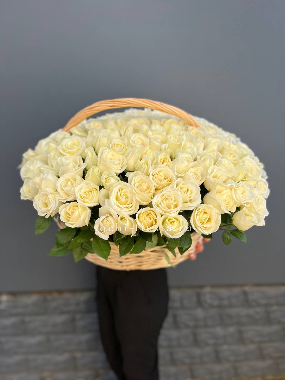 Пятьсот пятьдесят пять роз в корзине с персональной надписью — это целая инсталляция из живых цветов. Объём композиции впечатляет масштабом и создаёт незабываемое визуальное присутствие.