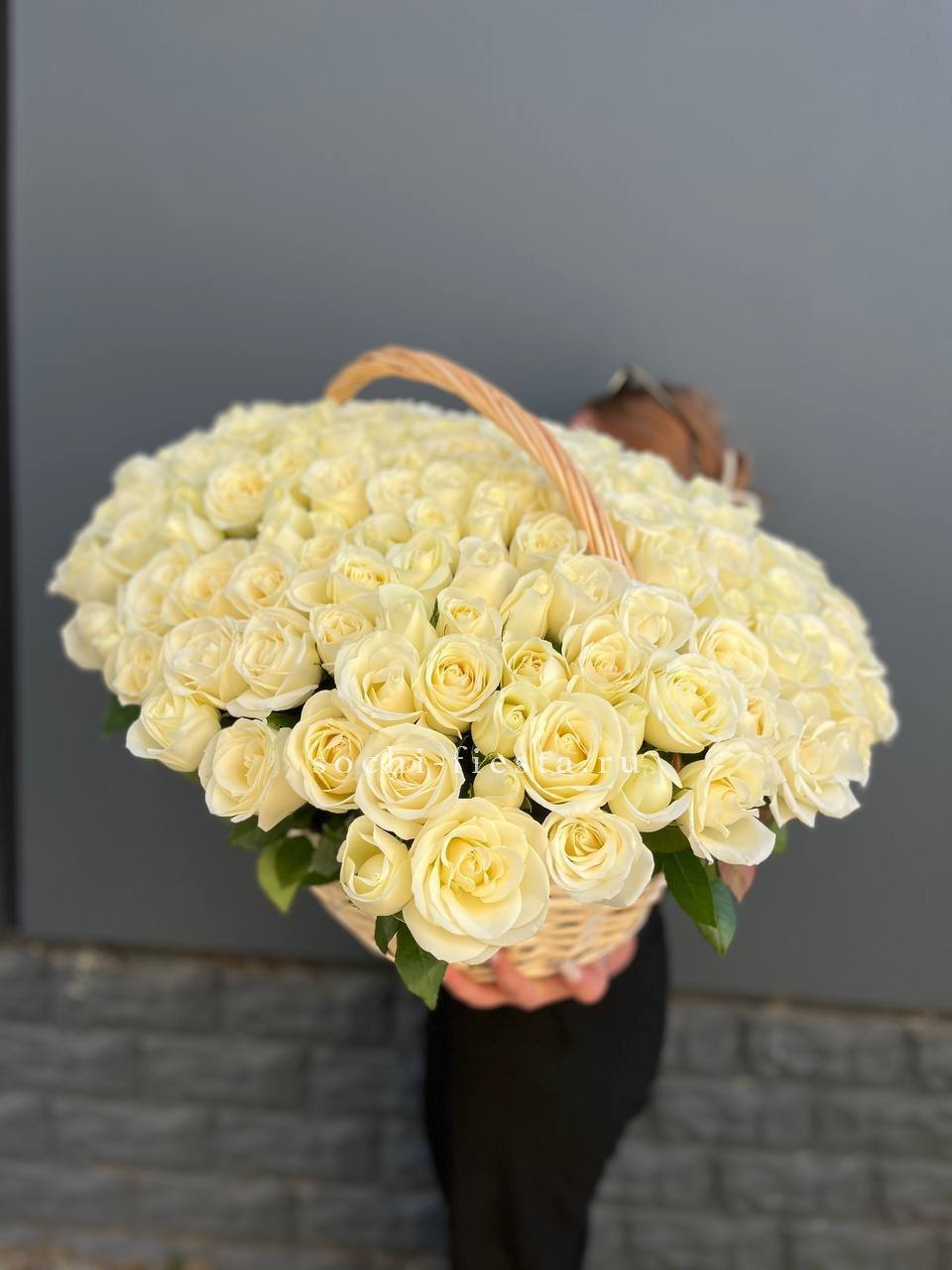 555 роз, зелень (папоротник или эвкалипт, в зависимости от сезона) оформление в корзину. Длина надписи не должна превышать 4 букв.