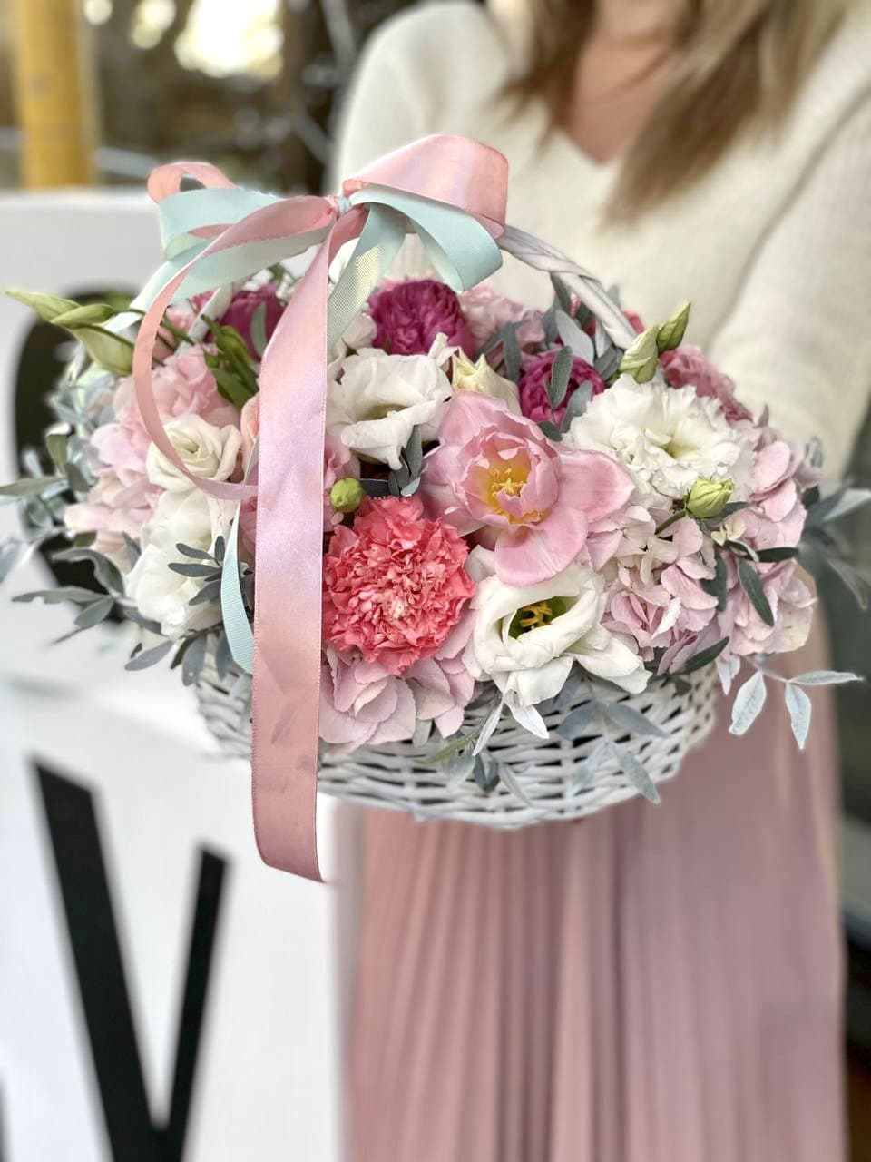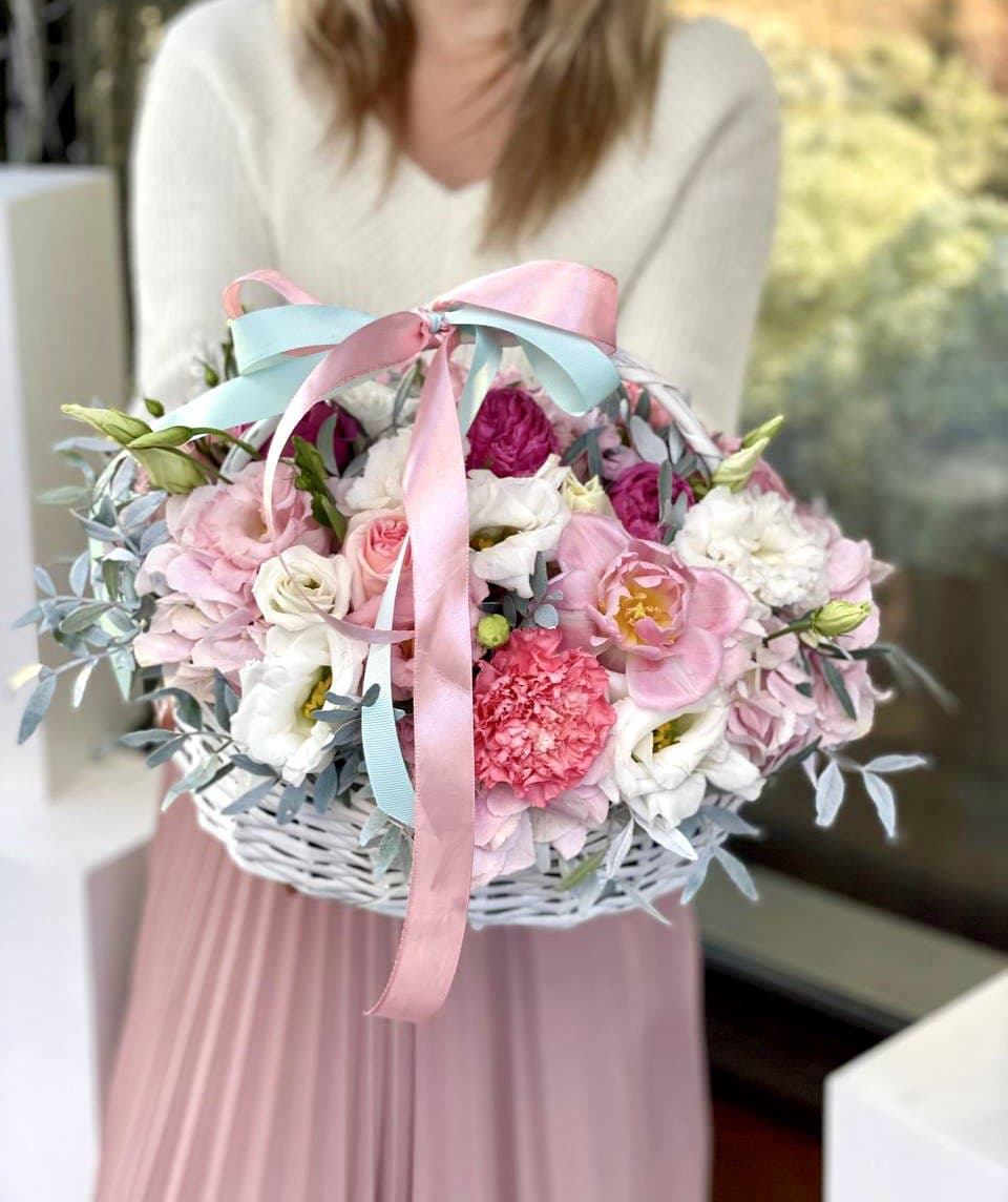 Цветочная корзина "Пинки вайт"