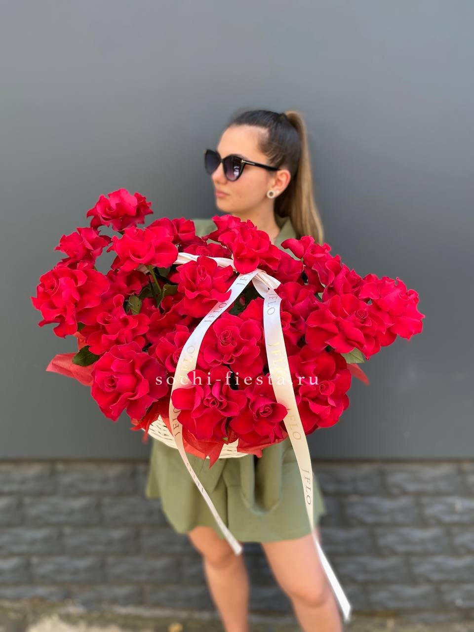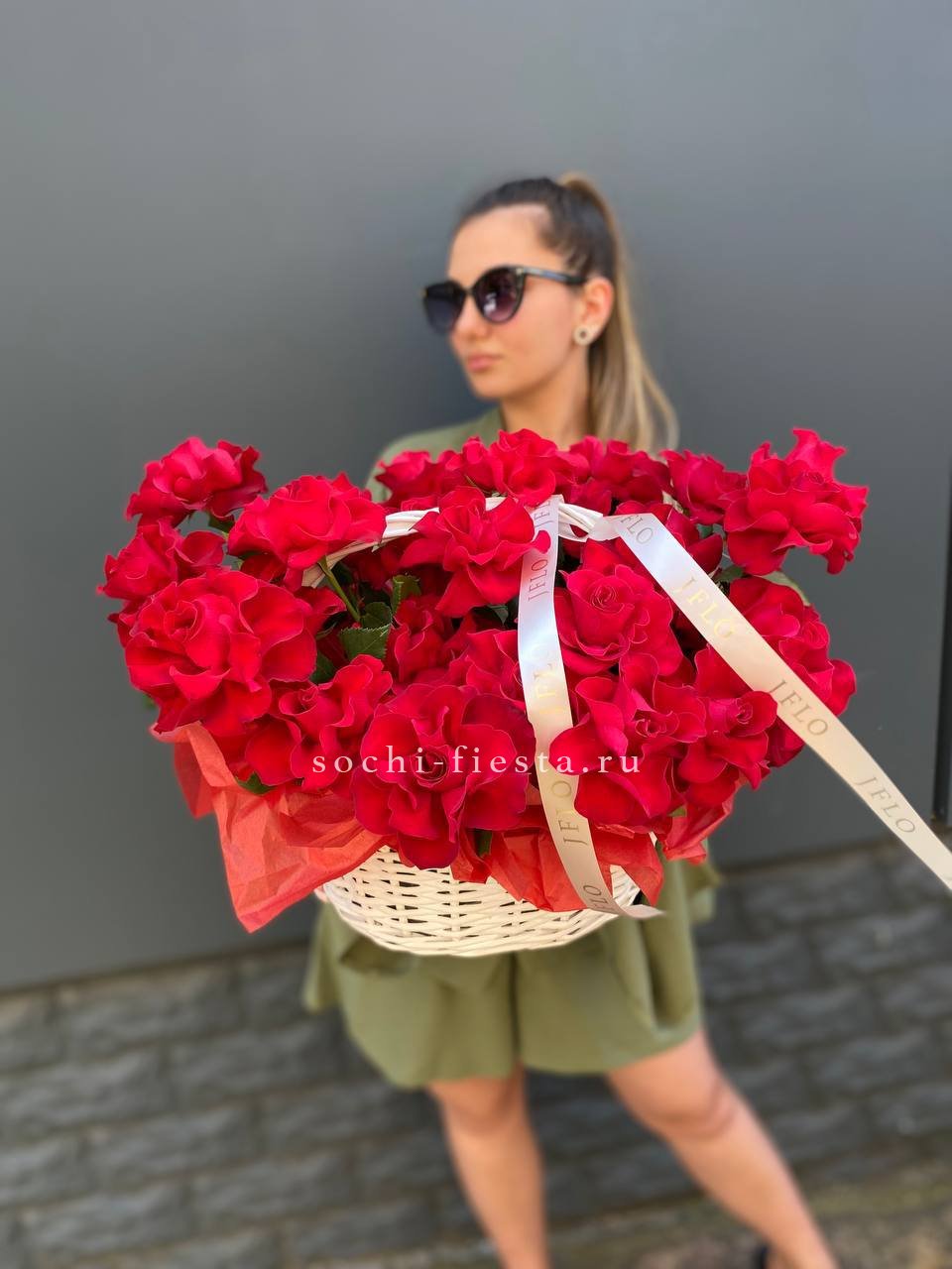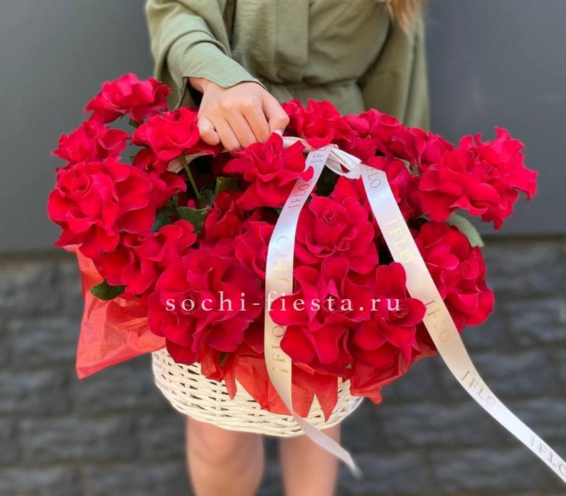 Для заказа товара "Красные французские розы в корзине" с доставкой в Липецке нажмите в корзину