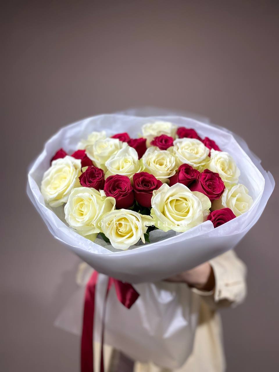Для заказа товара "Букет их красных и белых 25 роз" с доставкой в Липецке нажмите в корзину