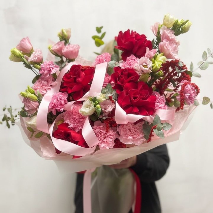Состав сборных букетов в Липецке: розы (Freedom, Mondial), хризантема кустовая, альстромерия, эустома, фрезия. Дополнительно в сезон — тюльпаны, нарциссы, ранункулюсы, ирис. Поставки в Липецке раз в 3-5 дней из ближайшего регионального центра. Флорист планирует ассортимент под дату поставки и знает, что будет в наличии к нужному дню.