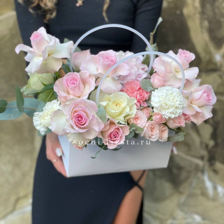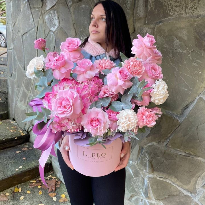 Выписка из роддома — пастельные тона в шляпной коробке. Школьные выпускные — отдельный большой сегмент весной: букеты для учителей, небольшие букеты для выпускников.