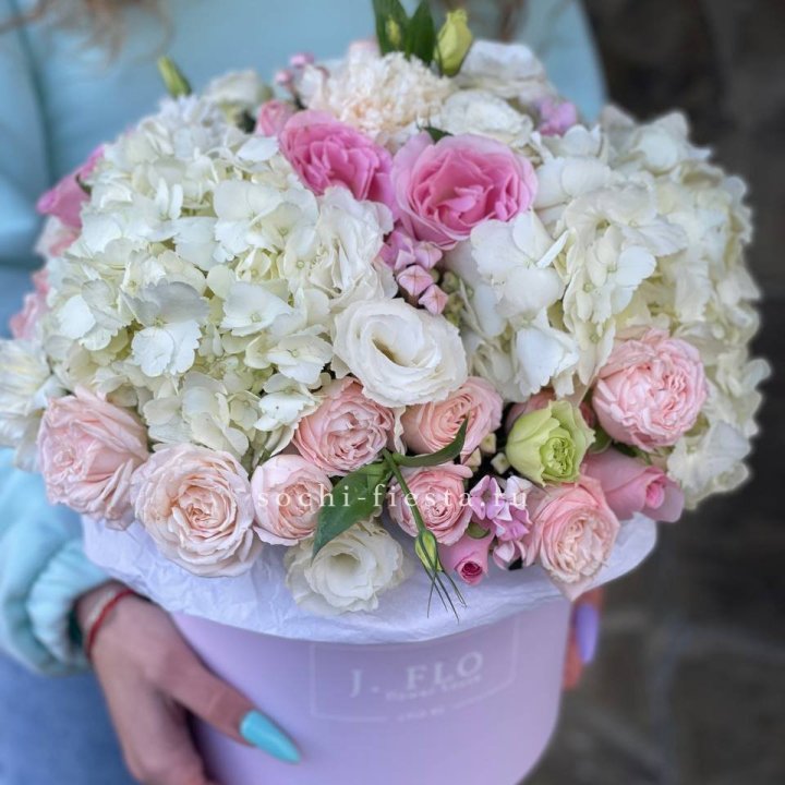 Выписка из роддома — пастельные тона в шляпной коробке. Школьные выпускные — отдельный большой сегмент весной: букеты для учителей, небольшие букеты для выпускников.