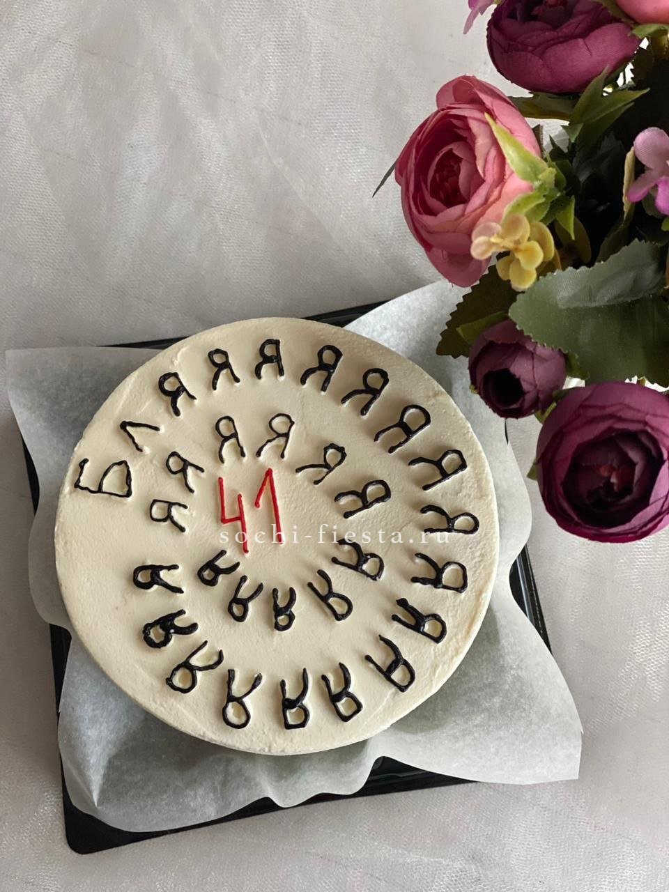 Три слова на поверхности торта говорят без лишних объяснений. Крем и декор создают завершенную картинку в формате персональной порции. Начинка на выбор делает момент еще приятнее.